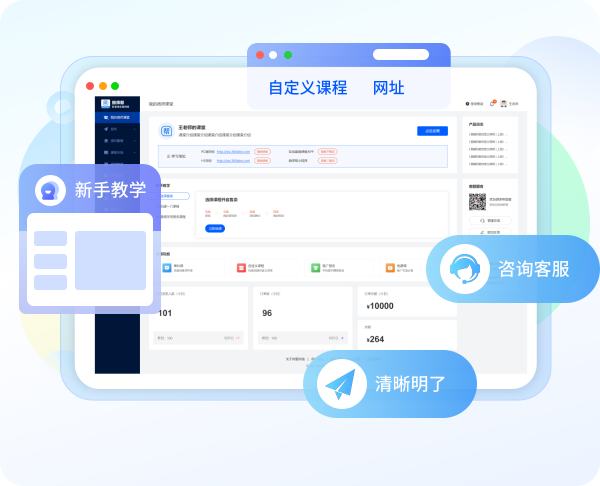 网校管理,个人专属网校,实现对课程、学员、数据、品牌形象的统一管理,帮助老师从复杂的技术困难中解脱。